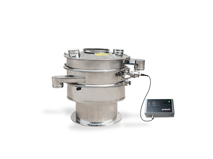 Ultrasonic vibrating sieve change 220V, 50Hz or 110V, 60Hz electrical energy into 36KHz high-frequency electrical energy, then input ultrasonic transducer, it will become 36KHz mechanical vibration, the power of the ultrasonic wave make the screen with high-frequency vibration. When the materials vibration with low-frequency , superimposed on the ultrasonic vibration, screen mesh can prevent clogging, but also to improve the output and quality screening, to achieve the purpose of efficient screening and cleaning screen surface, ultra-fine powder is easy to sieve. The system introduces a low-amplitude and high-frequency ultrasonic vibration wave (mechanical wave) on the screen based on the traditional vibrating screen to improve the screening performance of the ultrafine particles. Particularly suitable for high value-added fine split users.